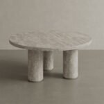 The Casoli Coffee Table is a stunning piece, expertly fashioned from natural travertine. This exquisite table features a rounded tabletop, beautifully complemented by three sturdy, well-proportioned legs that seamlessly integrate into the design. The legs are carefully set into the tabletop, enhancing the table’s stability while contributing to its overall aesthetic appeal.