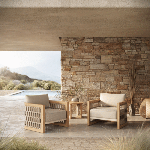 The N2 Side Table epitomises artisanal charm and contemporary design, making it a welcome addition for the outdoor spaces curated by the most discerning individuals. Finished in light teak, this side table is an exhibition of craftsmanship, where the natural allure of intricately carved teak meets the modern sophistication of handwoven panels. The result is a piece that stands out as a sculptural work of art.