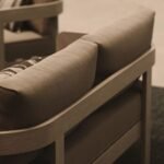 The N3 collection pays homage to the modern concept of proportion and architectural intricacy. The N3 Sofa is meticulously constructed from robust aluminium with a realistic wood effect powder coated finish. Its clean lines are juxtaposed with its gracefully curved backrest, accompanied by two supporting side legs and and two subtle legs at the rear.