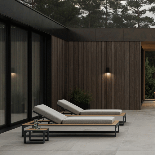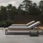 This N5 Collection Side Table features a sleek dark grey powder coated aluminium frame complemented by warm teak detailing. The juxtaposition of materials creates a striking visual contrast, blending industrial appeal with organic warmth. The table’s minimalist silhouette is defined by clean lines and an contemporary design that accentuates the natural beauty of the teak wood. The natural untreated teak’s golden-brown tones and distinctive grain patterns bring a touch of nature’s artistry to this piece.